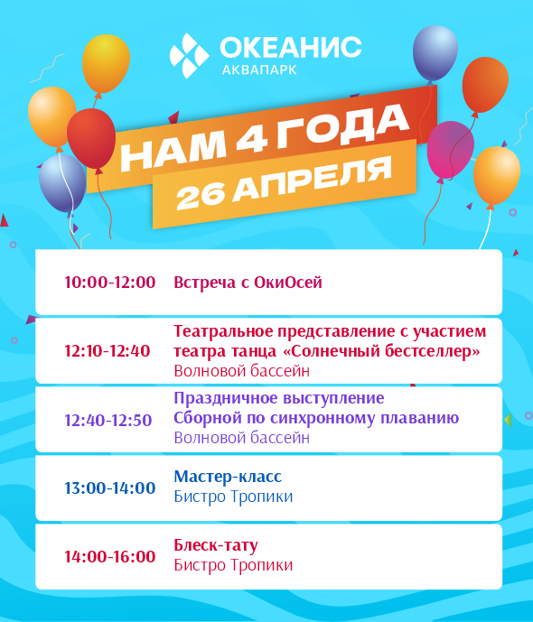 Приглашаем вас на День рождения аквапарка - отмечаем 26 апреля!🎉